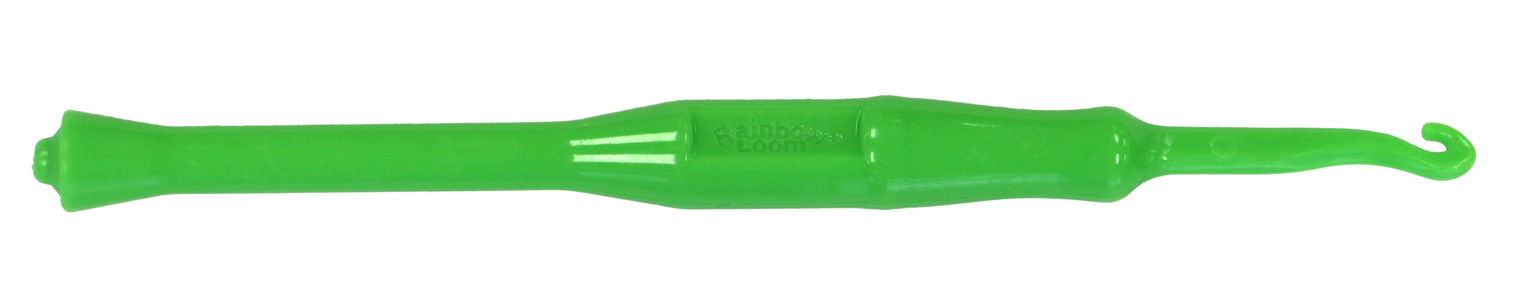 Similar to the hook that comes with Loomi-Pals™ Combo Sets. The back end of the hook is a loop holder designed to transfer loops onto Rainbow Loom®.
